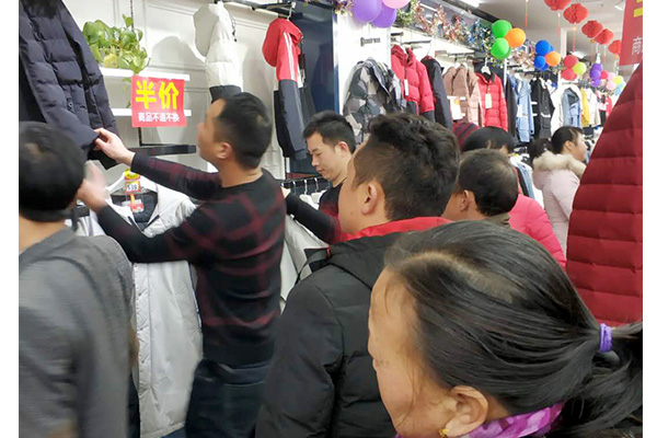 春节过后,云梦地区降温明显,气温一度降到零度以下。天气一冷,顾客对服饰的需求变得更加强烈,再加上云梦店适时推出的冬季特惠活动,吸引了不少顾客光临,引发了抢购热潮。因为大部分冬款商品都是半价销售,不少消费者将目光转向了高价位的羽绒服、棉服等,大家都觉得以这样的价格买到冬款的服饰非常划算。